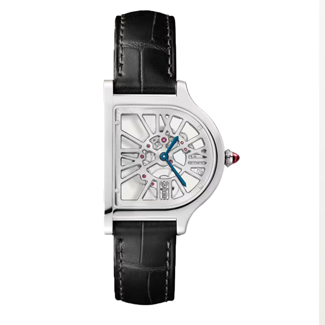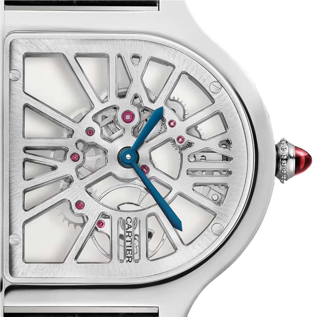 The cloche de cartier skeleton is a rare and striking timepiece, crafted in platinum with skeletonized roman numeral bridges and manual-winding caliber 9626 mc. Its distinctive cloche-shaped case, ruby cabochon crown, and interchangeable leather straps embody cartier’s mastery of both horology and design. Limited to just 50 numbered pieces.
