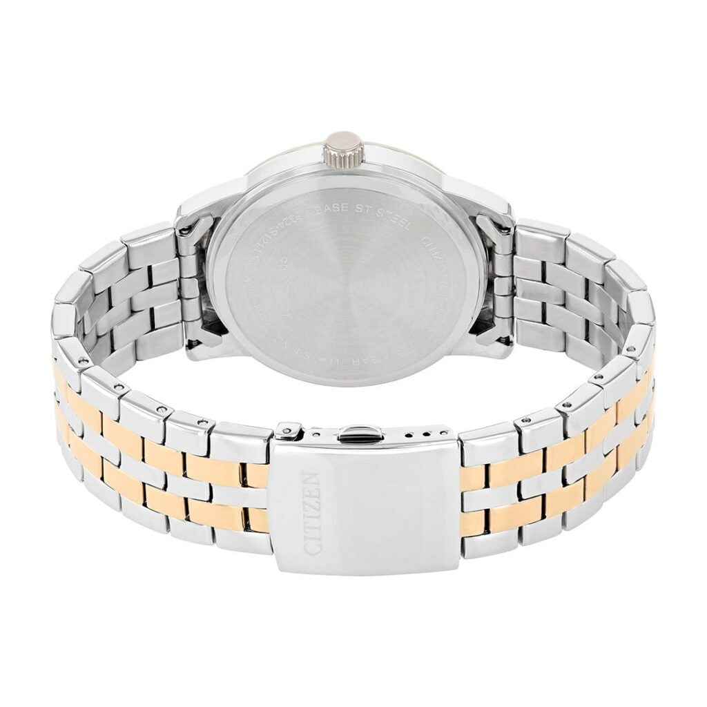 - The Citizen Two-Tone Pink Gold Moonphase Watch is an elegant dress timepiece that blends sophistication with functionality. Featuring a 42mm stainless steel case with two-tone pink gold plating, it offers a refined and luxurious appearance. The matching two-tone stainless steel bracelet enhances its premium look, secured with a fold-over clasp and push button for ease and comfort.
