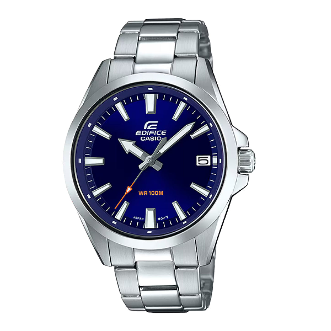 The casio 3-hand analog efv-100d-1av combines sporty design with everyday practicality. Featuring a bold arrow-shaped hour hand and date display, it offers easy readability and style. Built with stainless steel, 100m water resistance, and a screw-lock back, it’s durable and reliable. Powered by a 3-year battery, this watch balances function and elegance.