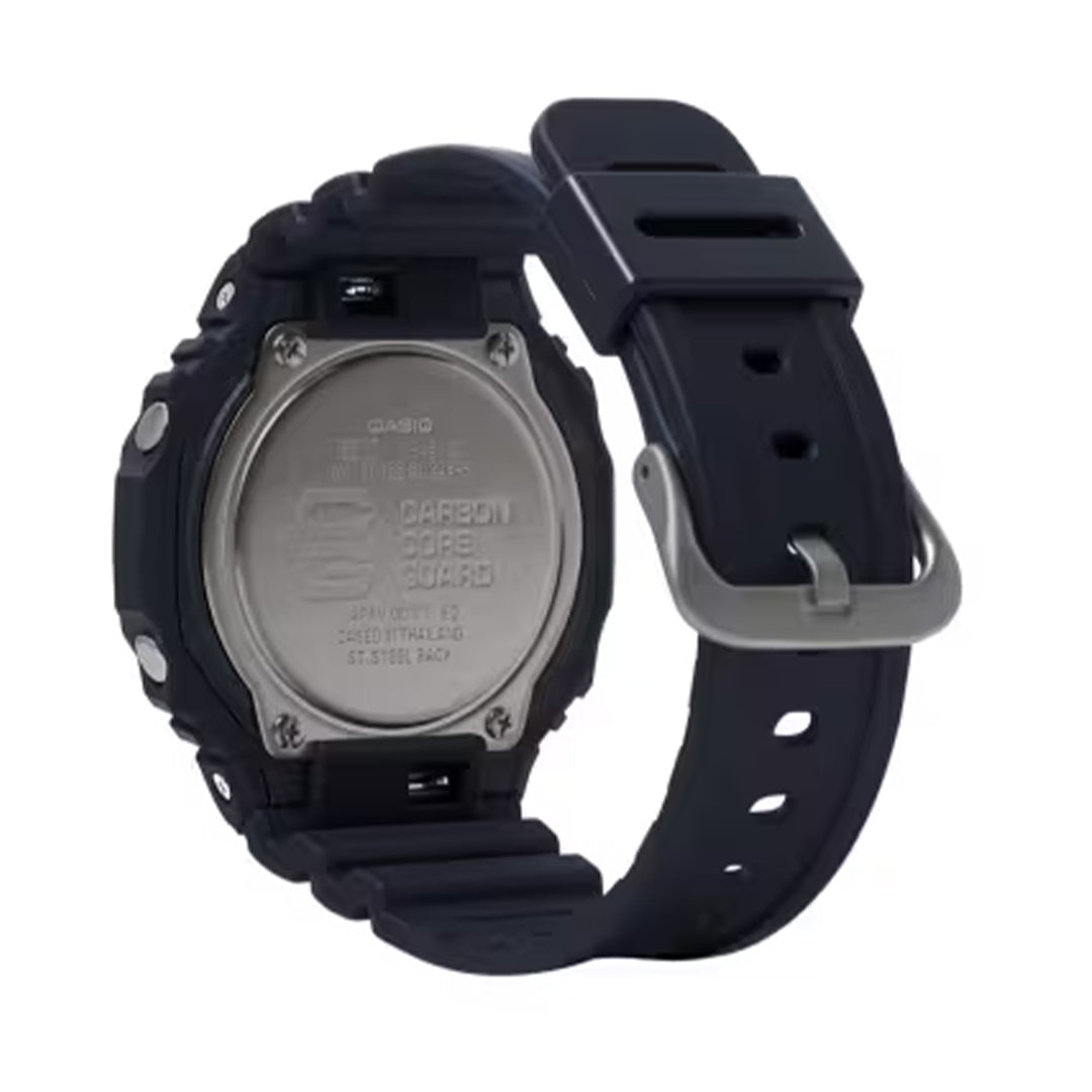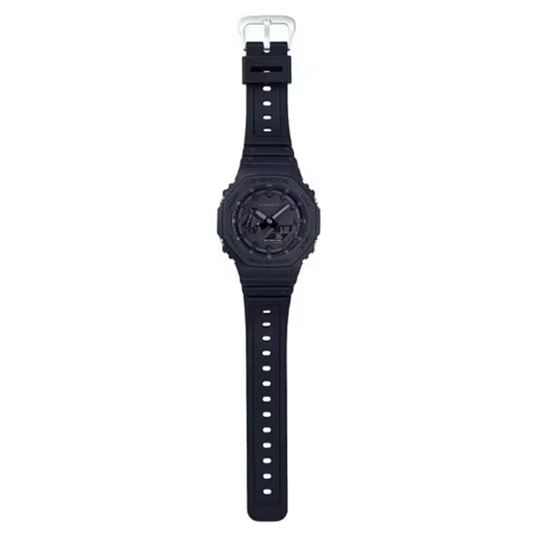The g-shock ga-2100 series blends rugged durability with sleek minimalism. Known for its octagonal bezel and slim carbon core guard case, it delivers shock resistance and 200m water resistance in a compact 11.8 mm profile. The ga2100-1a1 stands out in monochrome black, featuring double led super illuminators for easy readability in the dark. A modern classic in strength and style.