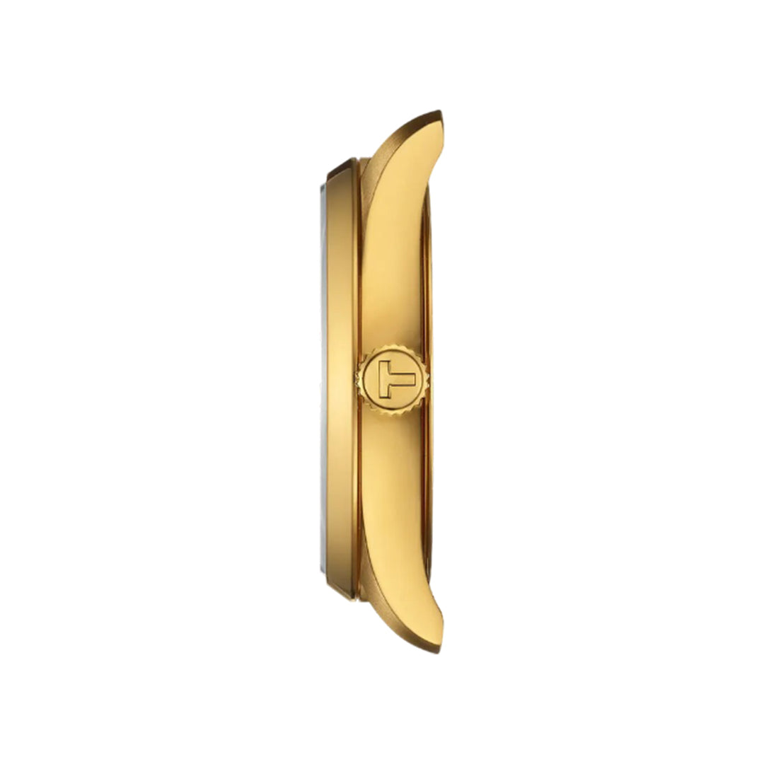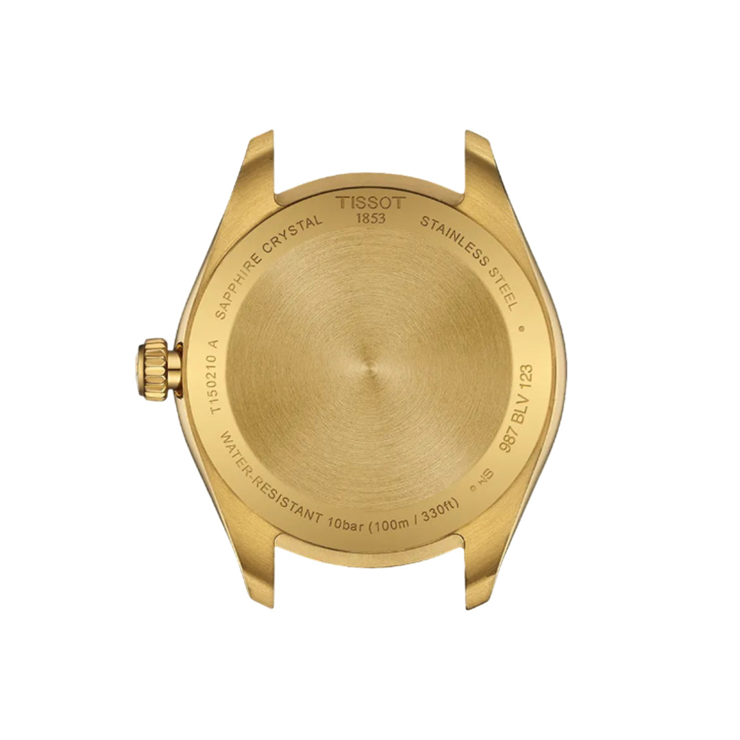 The tissot pr 100 34 mm combines precision and robustness with timeless elegance. Crafted in stainless steel with yellow gold pvd, it features a sapphire crystal, swiss quartz movement, and 100 m water resistance. A versatile everyday watch with a refined minimalist design.