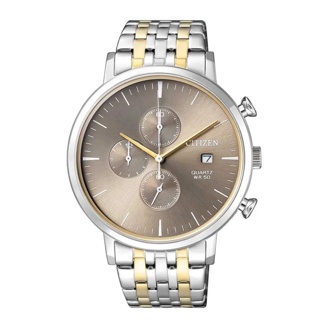 - This men’s dress watch is a perfect blend of elegance and practicality, designed to complement both formal and everyday looks. Featuring a round stainless steel case with a grey dial, it showcases a refined, modern aesthetic.