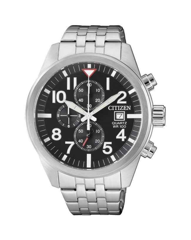 - This watch is a perfect blend of sophisticated style and precise performance. Featuring an intricately crafted chronograph accurate to within a second for up to 12 hours, it boasts a 2-year battery life, WR100/10Bar water resistance, and a large, easy-to-read black dial, making it ideal for both the beach and the boardroom.