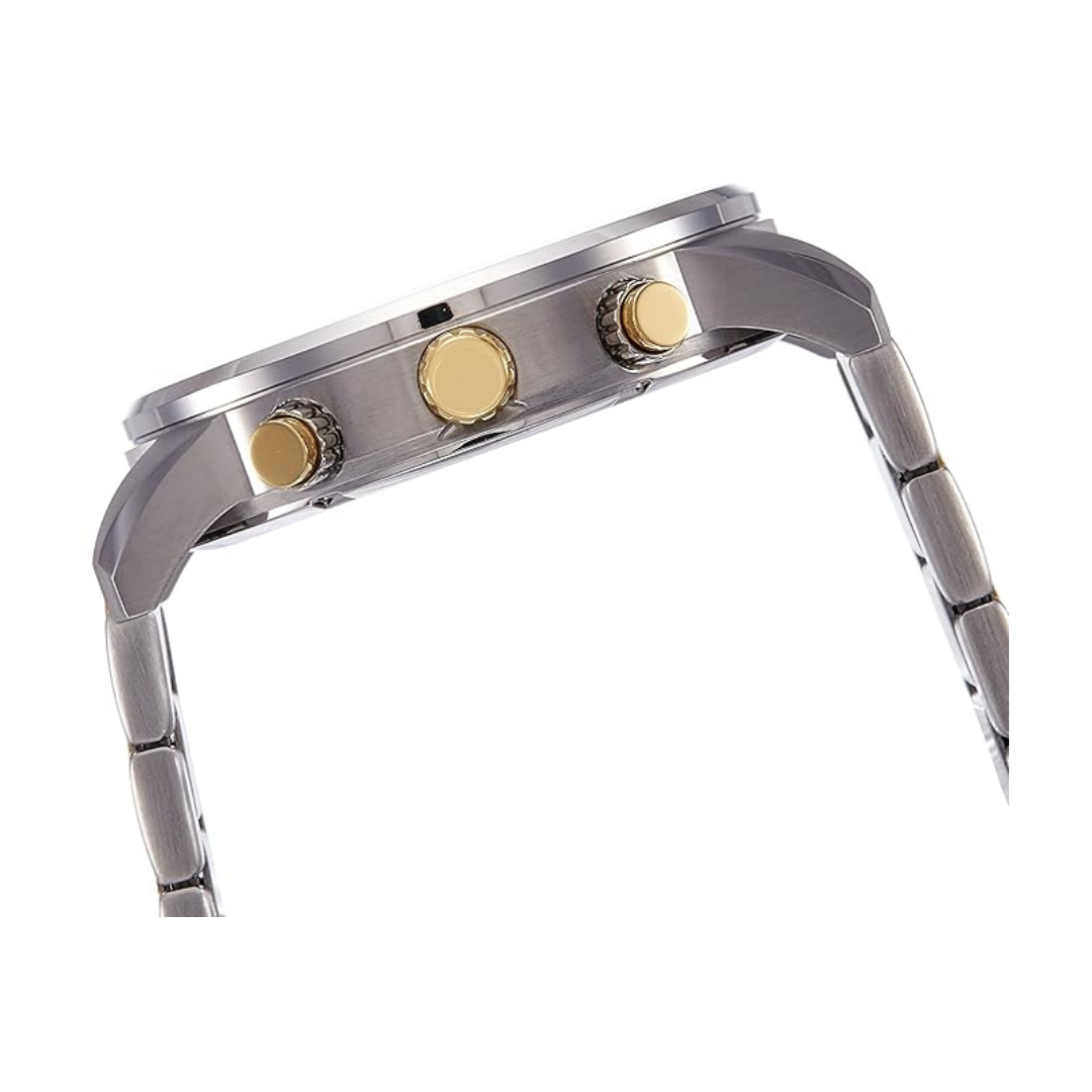 - Bold, refined, and built for performance — this modern chronograph that blends precision with timeless design. Featuring a stainless steel case and bracelet in a two-tone finish, this watch stands out with its sleek grey dial protected by durable mineral glass.