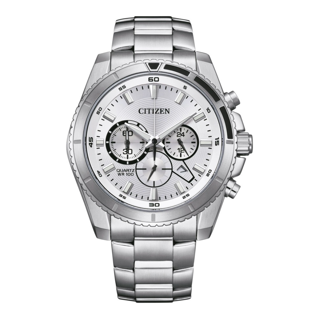- This Citizen men’s chronograph watch combines precision engineering with a sleek, modern aesthetic. Powered by Caliber 0520 Quartz movement, it ensures outstanding accuracy of ±20 seconds per month and features a 1/1 second stopwatch that measures up to 60 minutes, along with a 24-hour display and date function for everyday practicality.