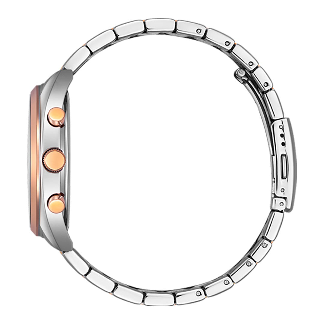 The Citizen Quartz Men’s Sports Chronograph comes with a 1/1 second chronograph, 60-minute timing, 24-hour display, and date function. Featuring a stainless steel case and bracelet with a dark blue dial, this watch is a true attention grabber. Powered by Citizen’s high-precision Japanese Quartz movement with Caliber 0520, it delivers accuracy, durability, and timeless sporty elegance.