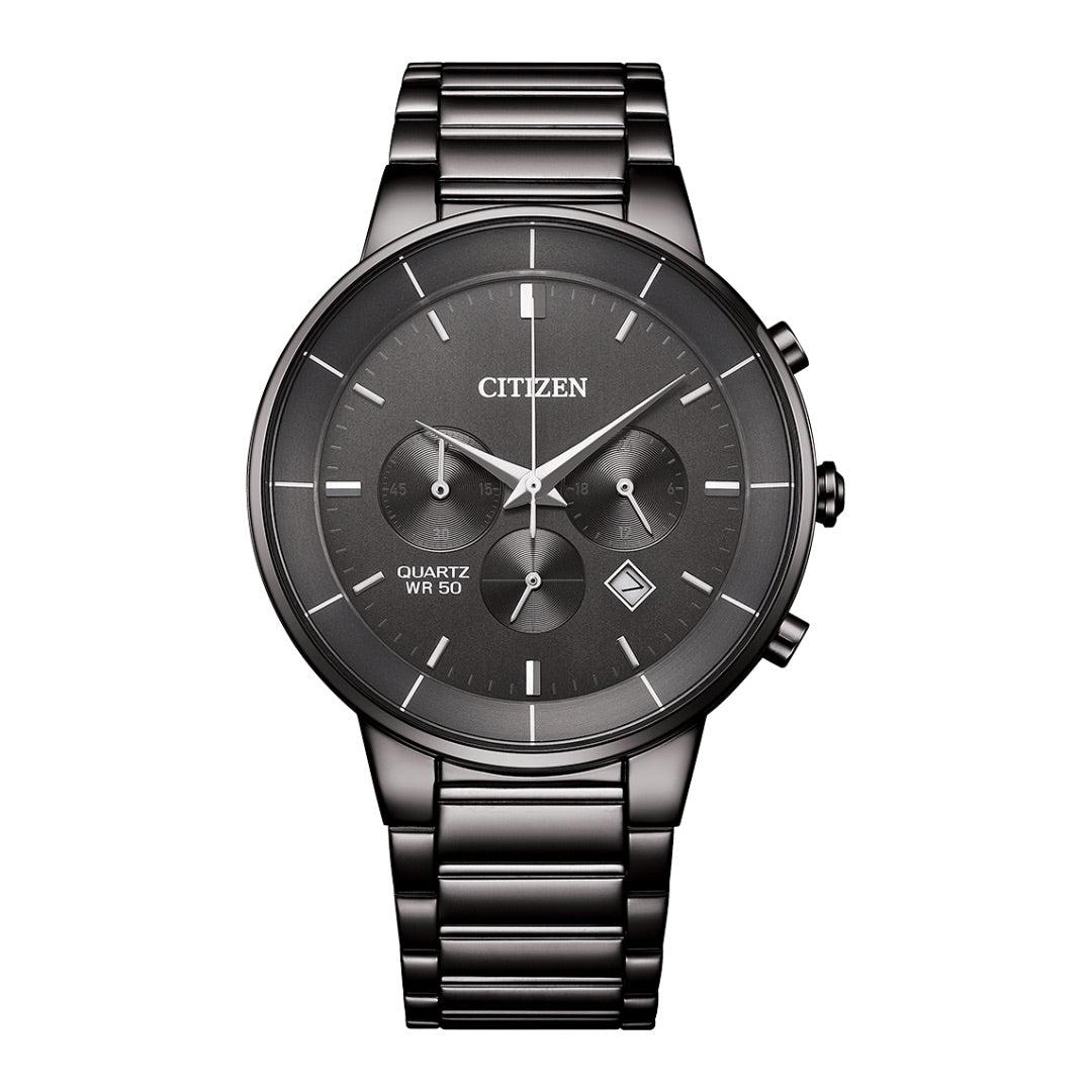 The Citizen Quartz Men’s Sports Chronograph features a 1/1 second chronograph with 60-minute timing, 24-hour display, and date function. Designed with a stainless steel case and bracelet, it showcases a sleek grey dial that exudes understated elegance. Powered by Citizen’s reliable Caliber 0520-C0A quartz movement, this 42 mm stainless steel watch includes a scratch-resistant mineral crystal, solid case back, and fold-over clasp with safety release. Water resistant up to 50 meters, it’s a durable and stylish choice for modern men.