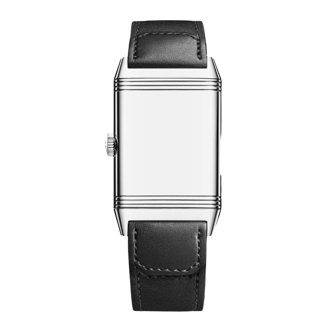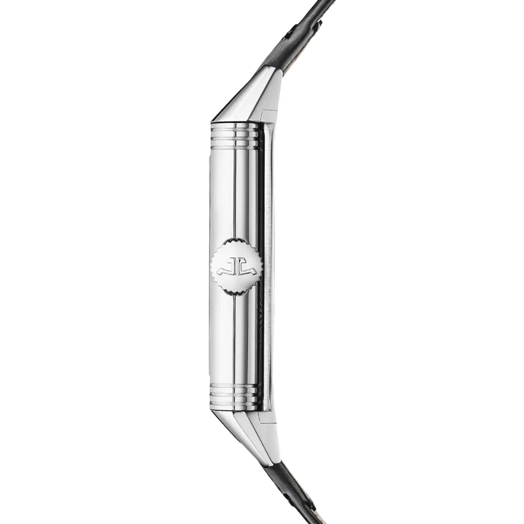 The jaeger-lecoultre reverso tribute small seconds features a 45.6 x 27.4 mm stainless steel case with art deco-inspired details. Powered by the hand-wound calibre 822, it displays a small seconds at 6 o’clock and comes with a casa fagliano leather-canvas strap.