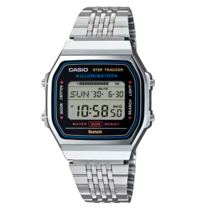 Vintage fashion meets modern functionality, delivering retro styling with up-to-date features. A classic design with a look-back vibe, the simple case complements the multi-row metal bracelet band with lay-flat construction to ensure a comfortable fit. But don’t let the vintage look fool you. The watch comes packed with super-useful technology to support your health-conscious lifestyle. The built-in sensor detects body movements and automatically counts steps. Easily check the number of steps you took that day on the LCD screen. Smartphone pairing via Bluetooth® delivers automatic time correction and makes it easy to configure various watch functions from the app. Transfer step counts and other data tracked on the watch and view them on your phone. Use the life log data to manage your health each day.